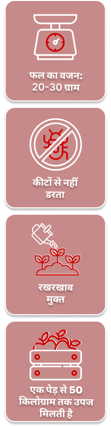 "ये चेरी की एक प्रीमियम वैरायटी है – रंग गहरा लाल होता है, स्वाद में मीठी और बहुत जूसी होती है। देखने में भी बहुत आकर्षक होती है, इसलिए बाजार में इसकी अच्छी डिमांड रहती है।"